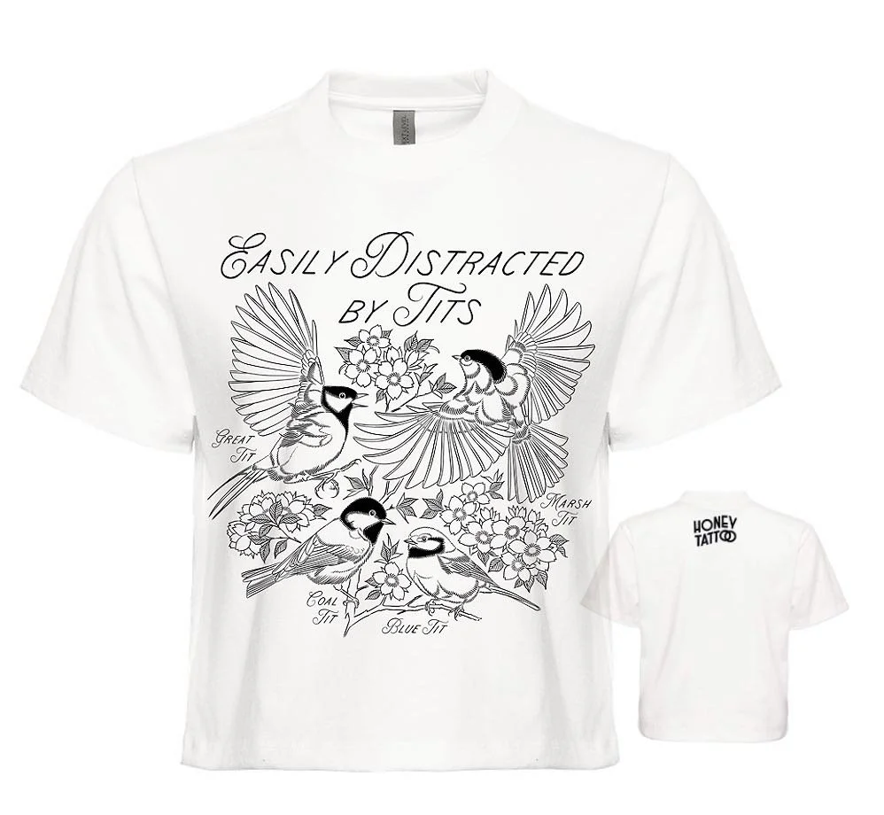 Store Crew Sweater Sale Price: $20.00 Original Price: $25.00 Sale Loon Print $20.00 Hawk Print $20.00 Gold Finches Print $30.00 Easily Distracted by Tits - Crop Tee $30.00 Sun Enamel Pin $10.00 Tallahassee Stickers - 3 Pack $5.00 Tallahassee Postcard - 5 Pack $10.00